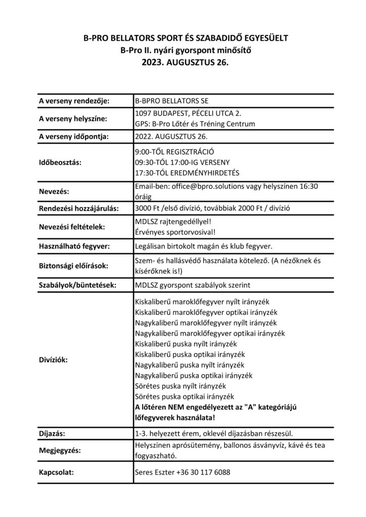B-Pro Nyári Gyorspont Minősítő Verseny!
